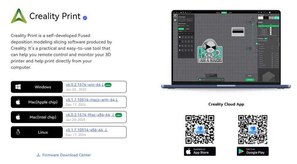 さて、まずは内蔵データの印刷に成功したということなのでお次は実際にスライサーを使っていきます。Creality PrintはCreality製3Dプリンター向けのスライサーソフトです。無料で利用が可能です。