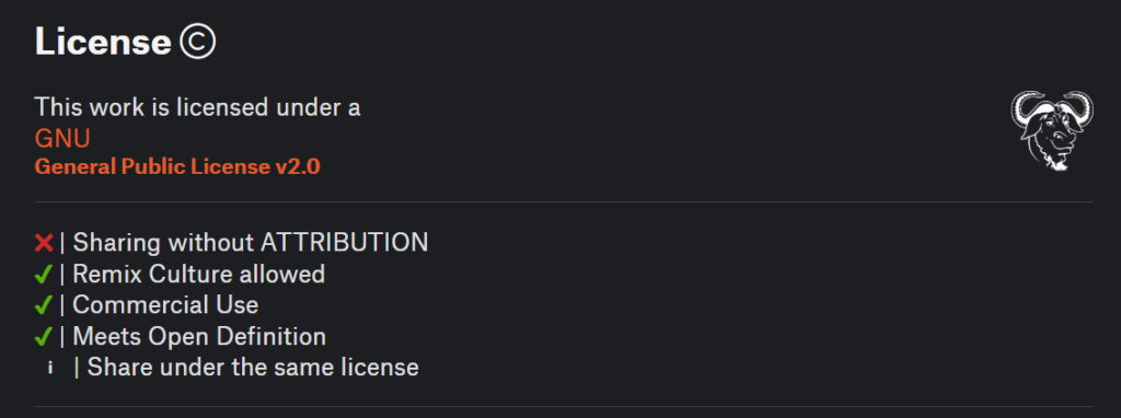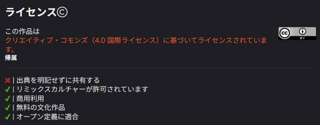 モデルの下の方に行くとどのようなライセンスがあてがわれているのか確認できます。