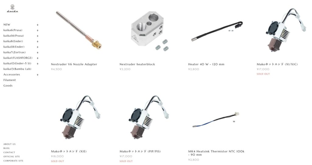 また消耗品の入手が本国からの輸入のみでしたが、最近TECDIAさんのkaika shopでも取り扱いが開始。ただこちらにあるのはあくまでV6タイプのノズルを使用するためのアダプターキットとなります。V6アダプターをつけてV6ノズルを使用するのは問題はないですが構造上取り付けをちゃんとしないとフィラメントが漏れ出すリスクがあるという点は要注意です。