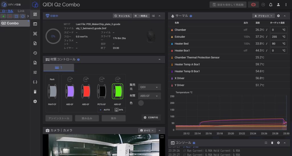 またフィラメントの乾燥はQIDI BOXメインで行っていたので気づきませんでしたがベッド&チャンバーヒーターを活用するモードでプリセットがちょっと荒ぶっている問題はQIDIに連絡しておきました。