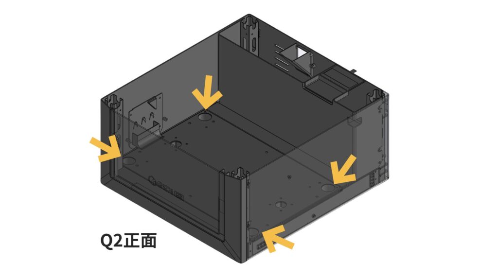 初期モデルのQ2コンボでは使用していなかったスロット、外部スプール向けのホルダーをつけるスロットが、新しいバージョンのQIDI BOXとの組み合わせになってから供用になってしまったため、外部供給したい場合いちいち外す必要があります。