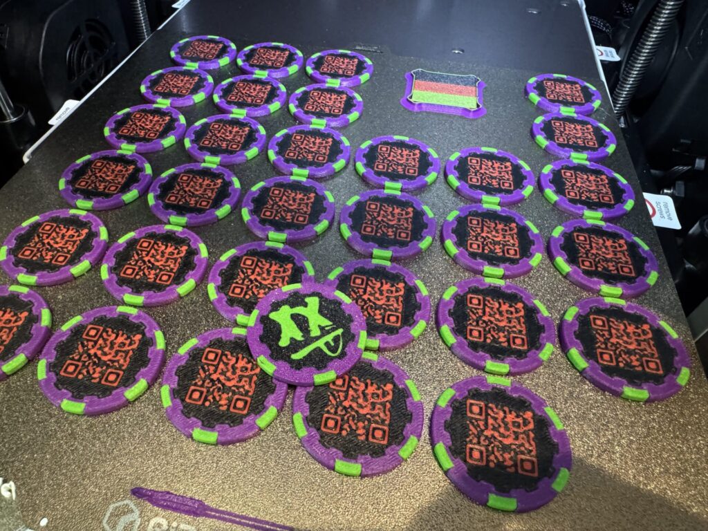 マルチカラーの耐久としてはやはり大量のMakerChip印刷!3DPrintopia向けに数百枚印刷してもっていきました。