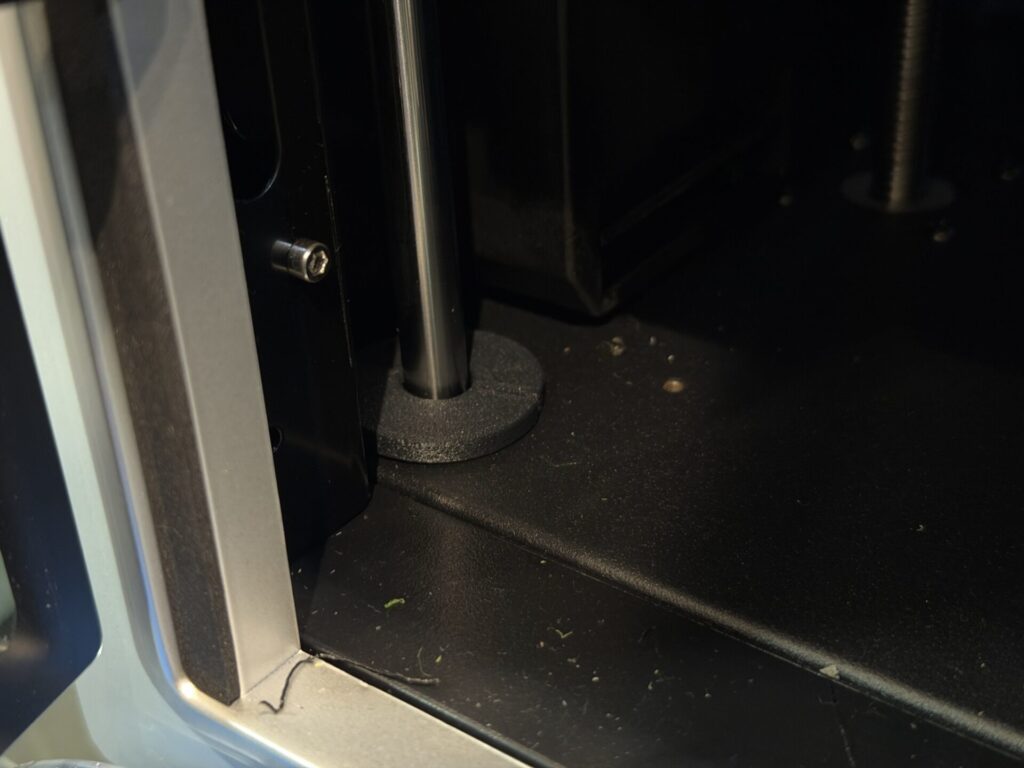 プラットフォームキャリブレーションを使うとZ軸が一番下まで下がってきます。普段はZ軸原点は上なので背の高いものを印刷しない限り下には降りてこないので問題ないですが、リニア軸のところはゴミが入ってしまう構造になっているのでここは常日頃印刷のカスなど入らないように気を付けましょう。
