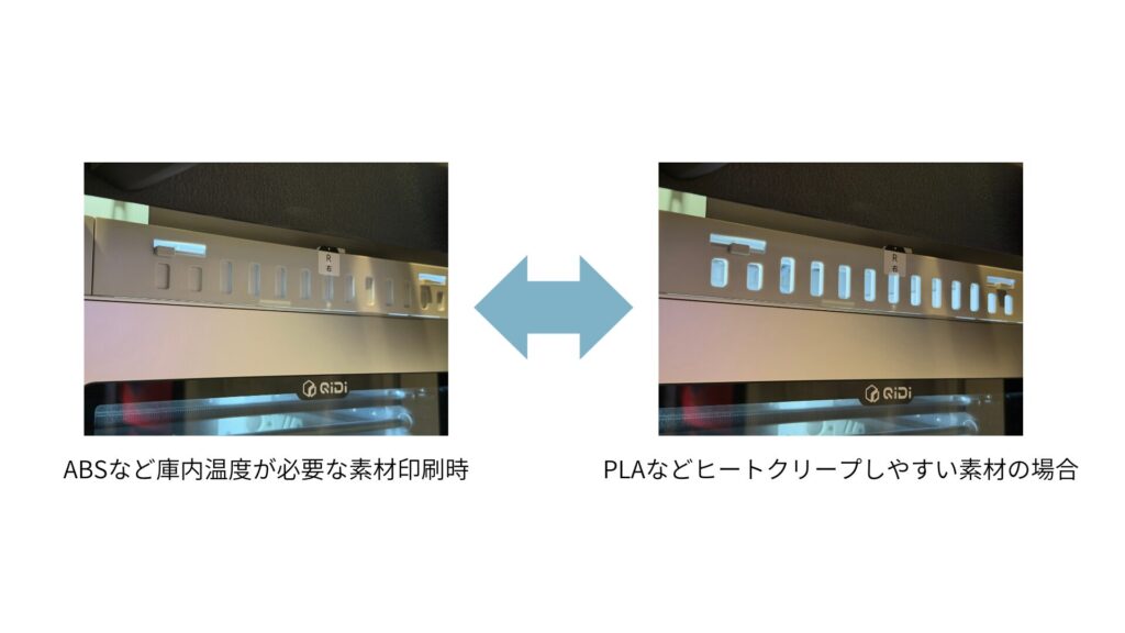 BambuLab X1を皮切りに始まった高速CoreXY 3Dプリンター類に多くみられる構造としてプリントヘッドへフィラメントを供給するPTFEチューブが天蓋を擦ってしまうレベルできついRで配置されてるが故にマシンによってはフィラメント切り替え・供給が不安定になったりフィラメントが折れやすいなどといった問題が発生しやすい場合がありそれを解決するために天蓋を上げる”Rise”するという機能をもったものです。