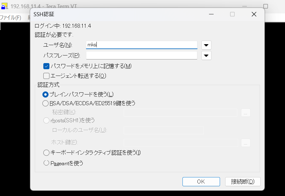 ID: mks パスワード makerbaseです。TeraTermなどを使えばいいかなと思います。